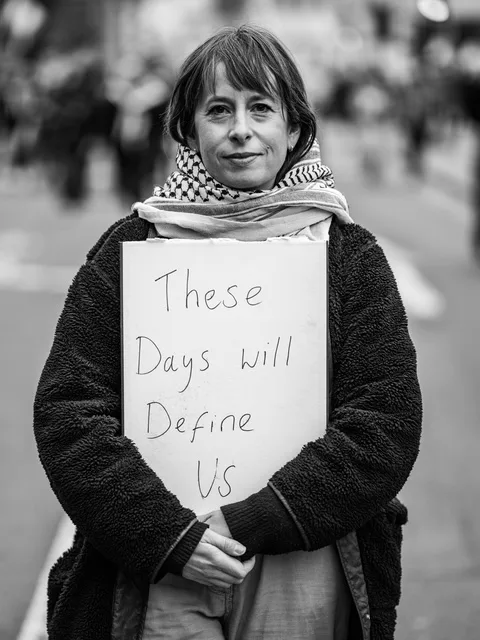For Harriman, the point of departure is the indivisibility of human experience. What happens to one of us, he suggests, inevitably reverberates across the collective, and his photographs visualise this interconnectedness with remarkable clarity: Holocaust survivors expressing solidarity with Palestine; members of the Palestinian diaspora mourning victims of racial violence; queer communities aligning themselves with broader decolonial and liberationist movements. Through these visual dialogues, Harriman reveals the structural continuities that bind ostensibly disparate forms of oppression. From the climate catastrophe to colonial violence, his work insists that no system of power or privilege ever remains insulated from the suffering it produces.