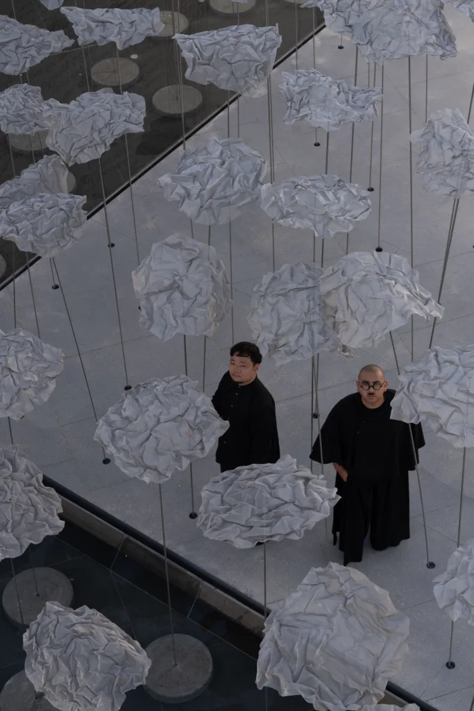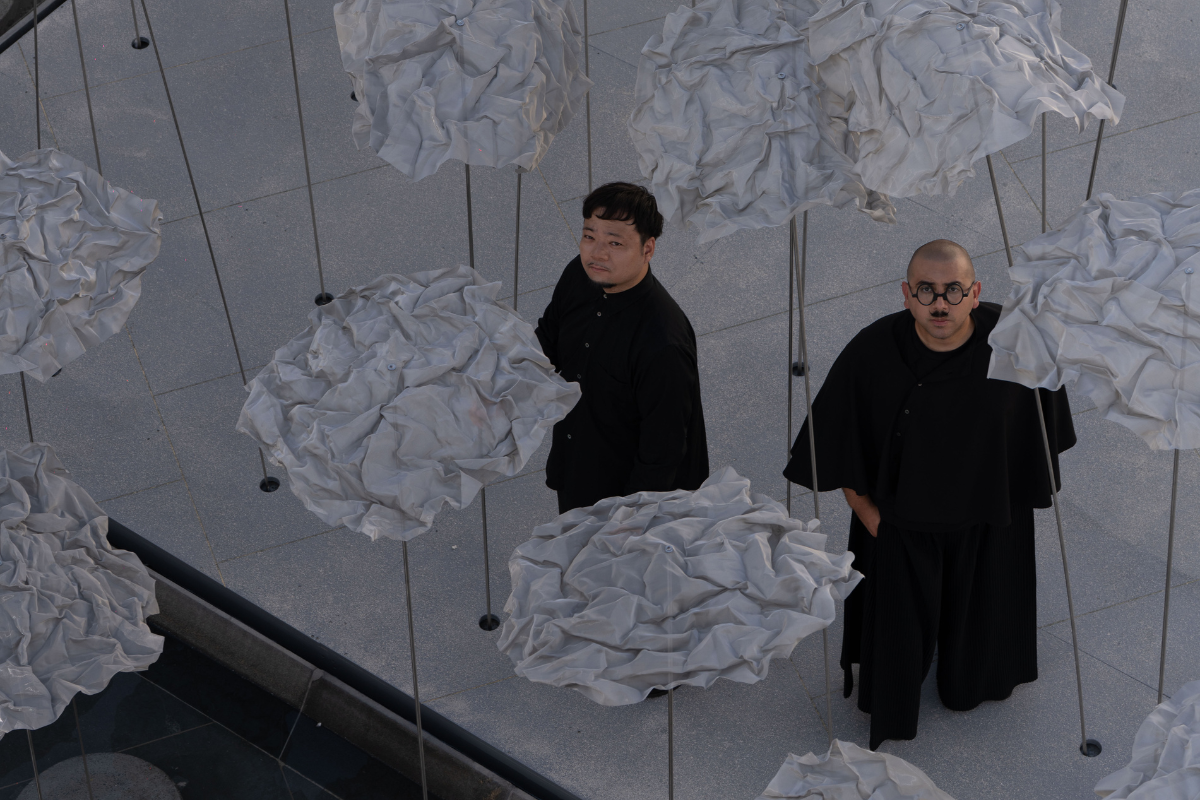 Yokomae et Bouayad is a design partnership founded in 2023 by Japanese architect Takuma Yokomae and the Moroccan architect Dr Ghali Bouayad. Their cloud pavilion installation comprises dozens of vertical, ultra-thin columns, each capped with steel mesh. As visitors move through the pavilion, the umbrella-like forms shape a variety of evolving spatial experiences, producing a constantly shifting interplay of shadows—entirely without any mechanical intervention.
