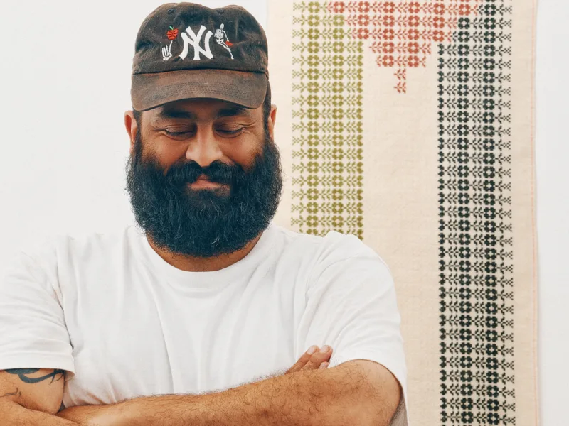 This complexity is key to the exhibition’s refusal of binary thought. Naamani does not simply challenge the Orientalist gaze on Iranian masculinity—she questions the very idea of fixed gender codes, drawing our attention instead to the ethics of embodiment. Her grandfather’s training tools, inherited and reinterpreted, are reassembled into poetic forms that converse with contemporary fashion and protest aesthetics. A pair of capri trousers, echoing the uniforms worn in the zurkhaneh, is embroidered with boteh jegheh (Persian paisley) and juxtaposed with underpants inscribed with the words “So we fought for a country of our own.” The boxer shorts—once a symbol of male bravado in the early 2000s, now reappropriated into women’s fashion—signal the ongoing flux of gendered symbols.