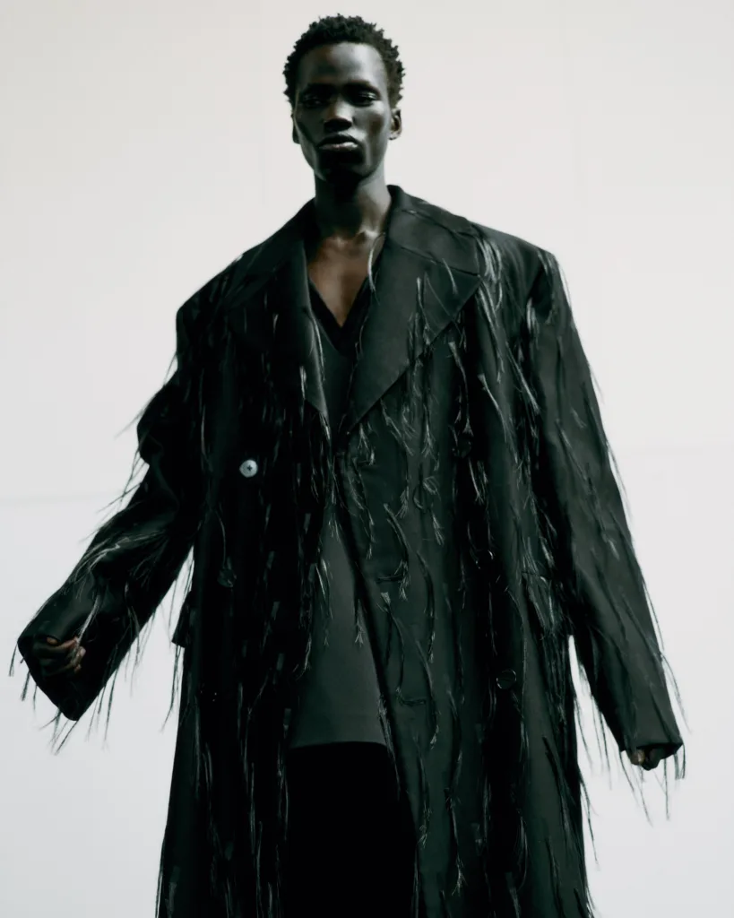 Yet, in presenting this, we also challenge you to play a game of seeing: to see these young models’ presence, not their faces. While the latter might be reproducible, the former is still inimitable. Software can’t experience the tumult of being in the world and aggregate hard enough to experience Dasein. Incapable of a real gaze (only a blank stare at best), it cannot reproduce the indignant flicker of emotion living behind the eyes. That feeling of touch that tells me looking at you, looking at them, that I am indeed here. And you are, too.
