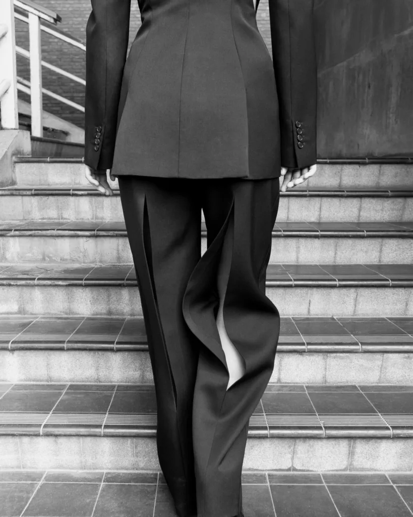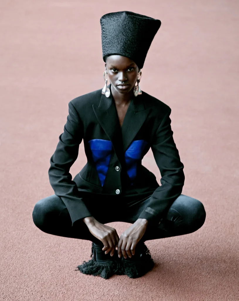 Sunira wears blazer, trousers J E CAI, shirt MM6 MAISON MARGIELA