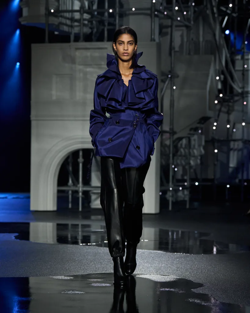 Anyone who has actually crossed London Bridge knows the choreography it demands. Dodging tourists, pushing against winds and rain. Moving with speed and gliding through tourists as. There is a specific strut required to survive it, and Lee presented this with pride as a focal point for the showcase. Burberry does not seek shelter from the storm. It opens the umbrella and enjoys a brisk stroll in it.