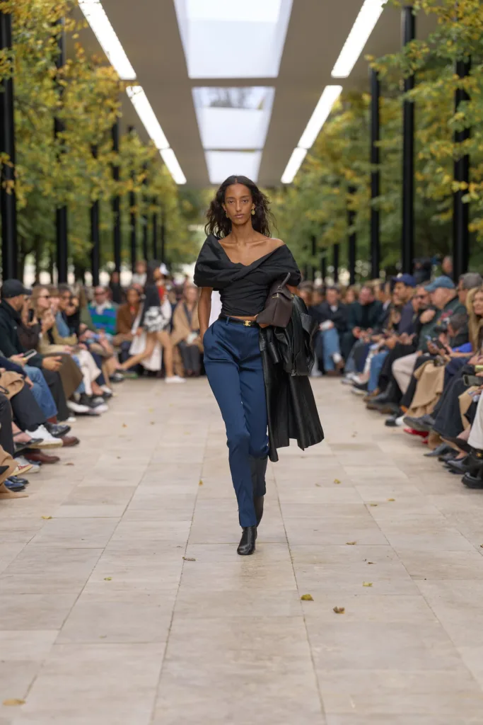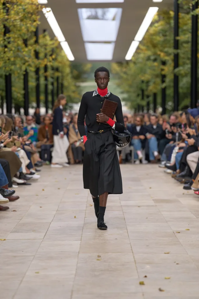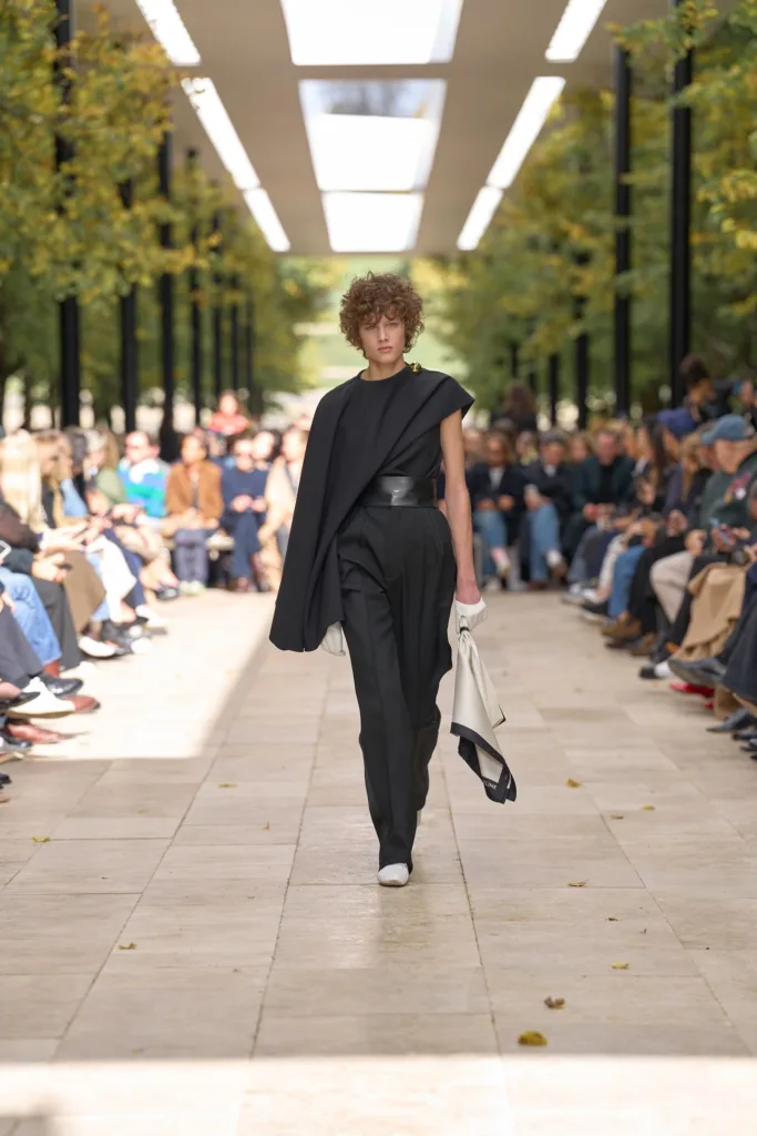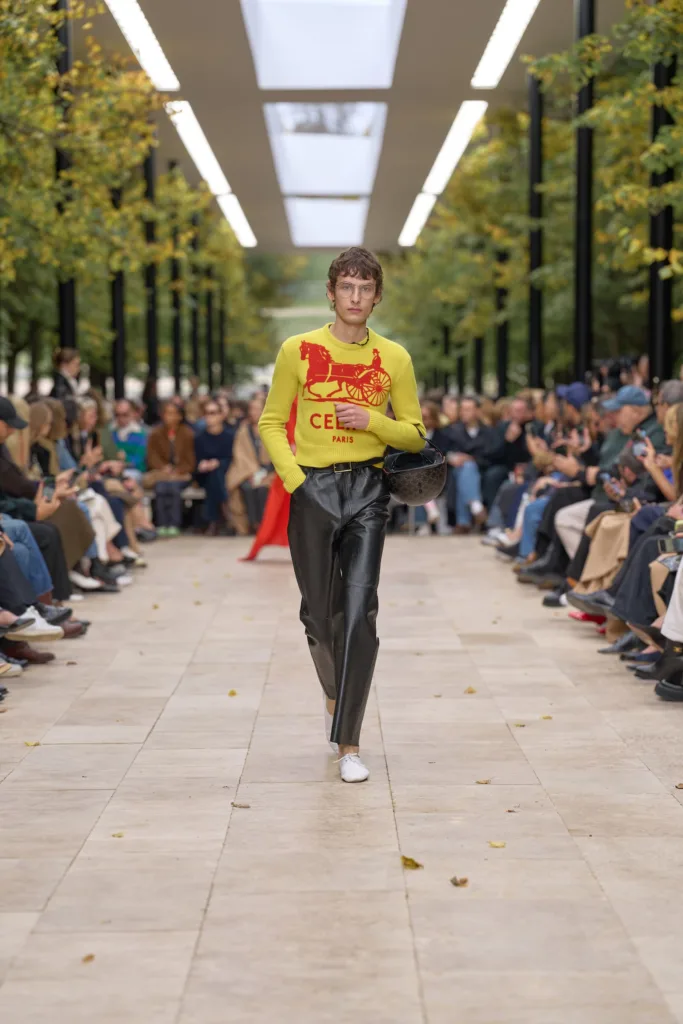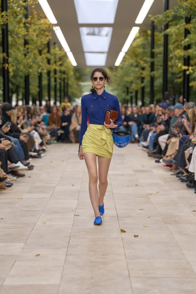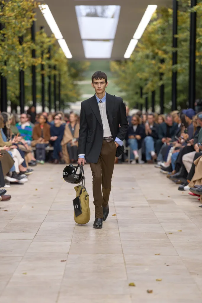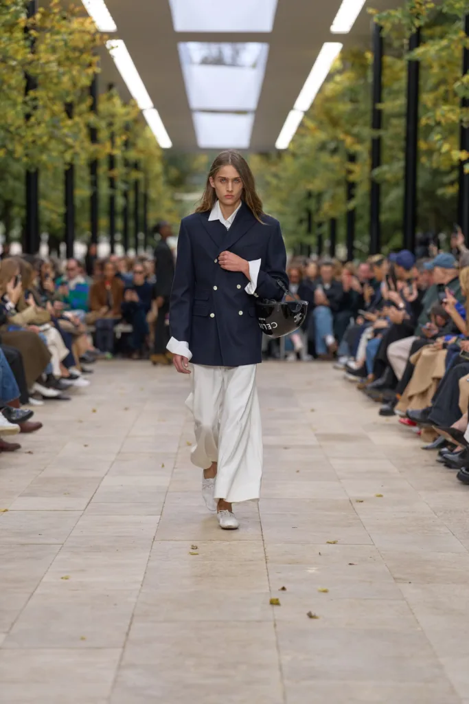 Yesterday (October 5), Michael Rider’s sophomore Celine show provided us with the helmets needed for a quick getaway. Hosted on the outskirts of the city, in the luscious Parc de Saint-Cloud, where Parisians like to promenade at the weekends, Rider deliberately took the Paris Fashion Week crowd out of Paris. “I thought it would be nice on a Sunday if we get out of the city and to a park,” he said backstage. Natasha Lyonne arrived in particularly French fashion, puffing on a cigarette, before squeezing onto the frow between seasoned showgoer Tracee Ellis Ross and French-Canadian actor Niels Schneider.