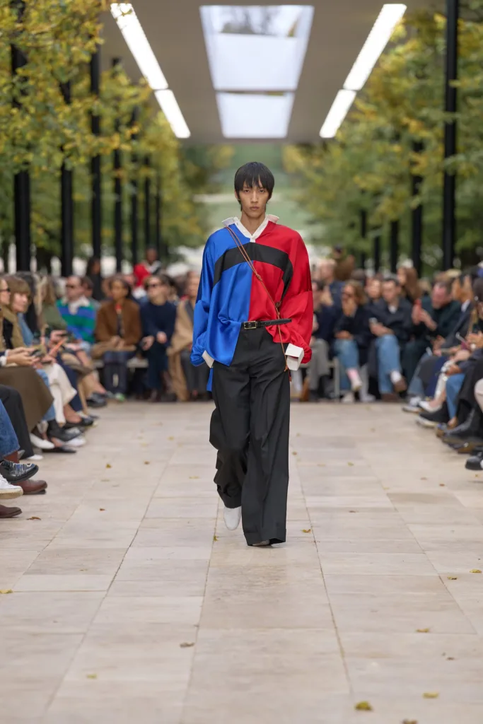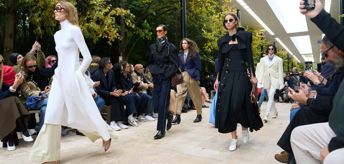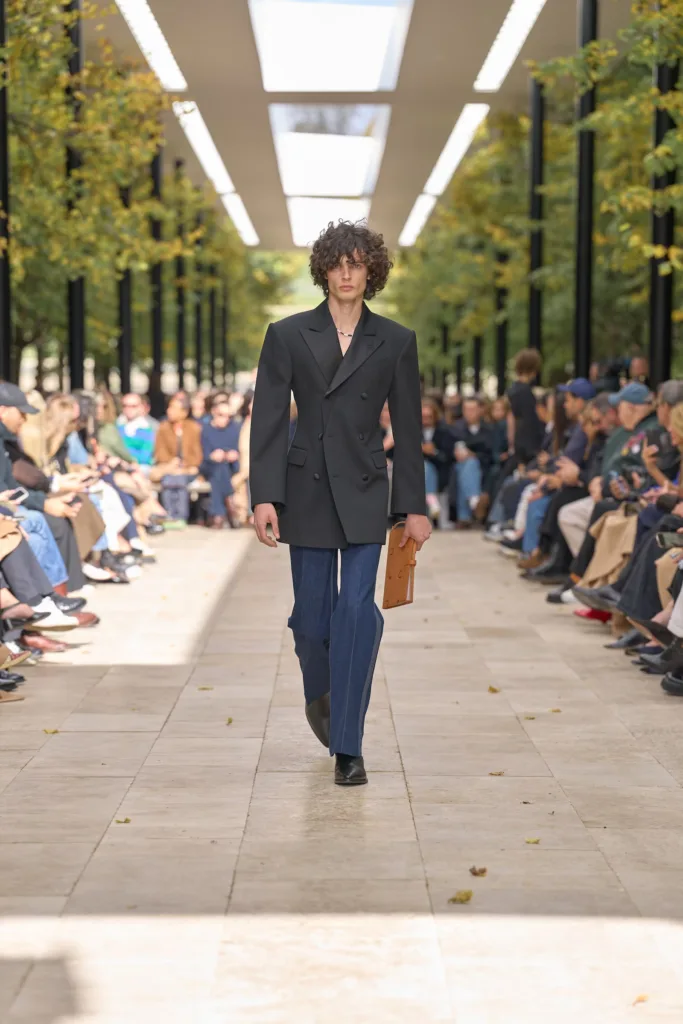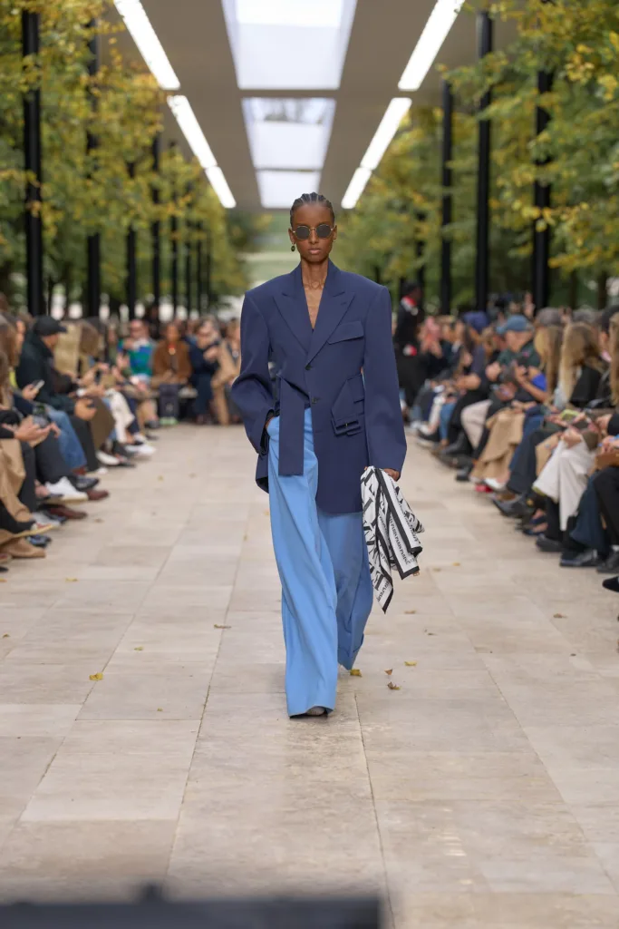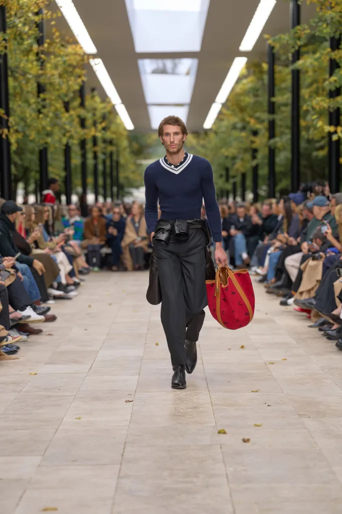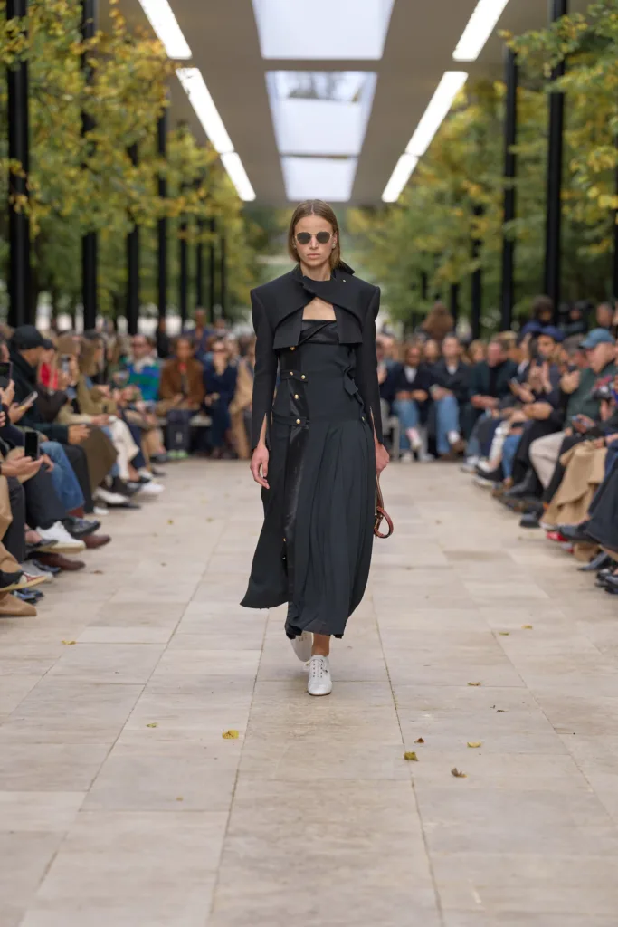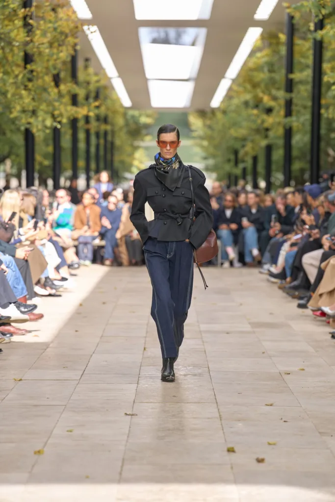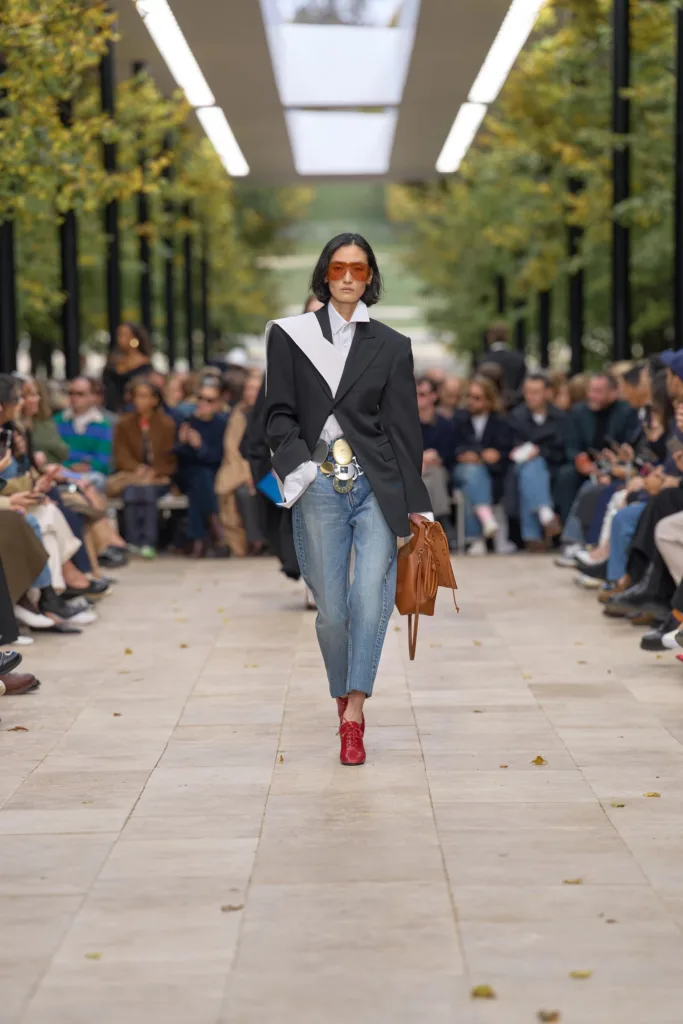 Yesterday (October 5), Michael Rider’s sophomore Celine show provided us with the helmets needed for a quick getaway. Hosted on the outskirts of the city, in the luscious Parc de Saint-Cloud, where Parisians like to promenade at the weekends, Rider deliberately took the Paris Fashion Week crowd out of Paris. “I thought it would be nice on a Sunday if we get out of the city and to a park,” he said backstage. Natasha Lyonne arrived in particularly French fashion, puffing on a cigarette, before squeezing onto the frow between seasoned showgoer Tracee Ellis Ross and French-Canadian actor Niels Schneider.