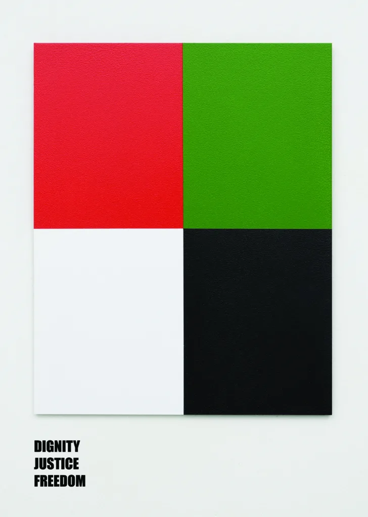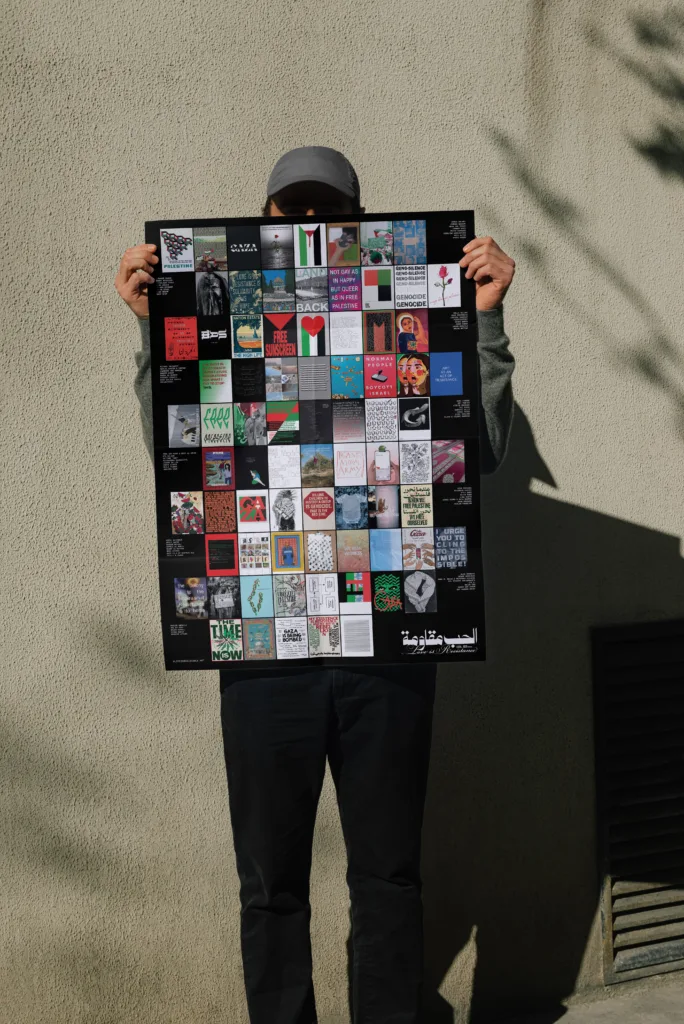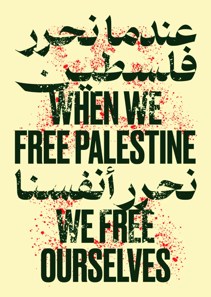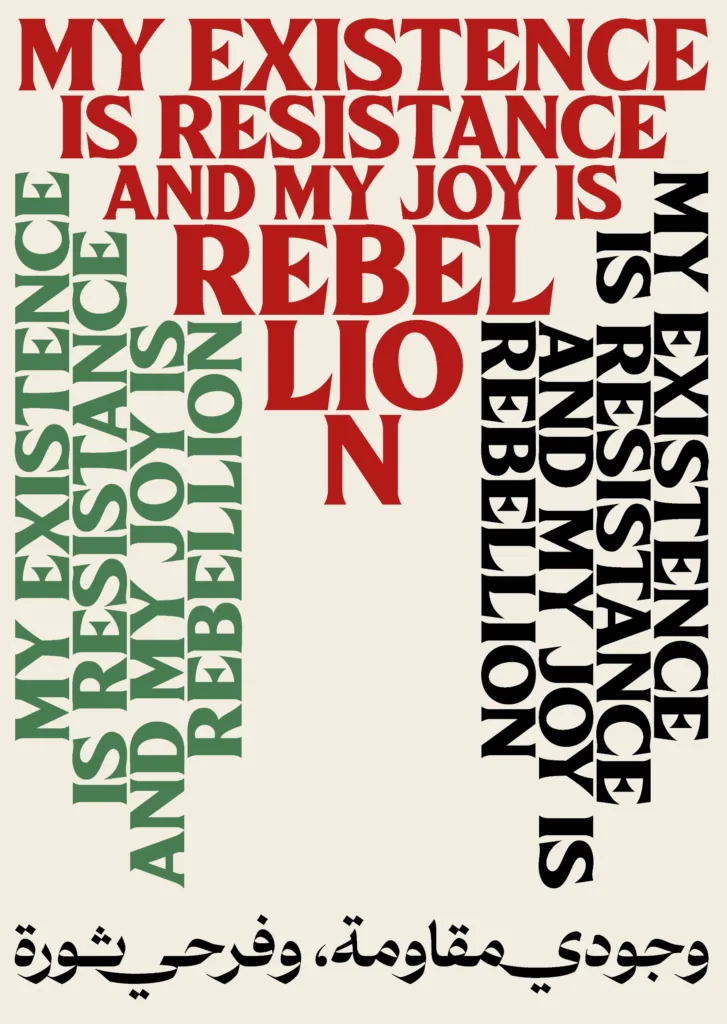Remarkably, this is not a power exclusive to Turner Prize winners alone. Poster-making only requires a basic understanding of human decency. Revolutionary art, and by extension, revolutionary action, can emerge from anyone. “This is why I felt it was important that the book’s contributors were not just artists,” explains Mousawi, “because everyone has something beautifully complex and meaningful to say, from the kids at the Ayjal Foundation to journalists like Miryam Francois.” This inclusive participation underscores the project’s democratic nature. Every poster is designed to intervene in public discourse through circulation and display. In this act of placement and movement, both the artist and the viewer become active participants in a broader cultural resistance.