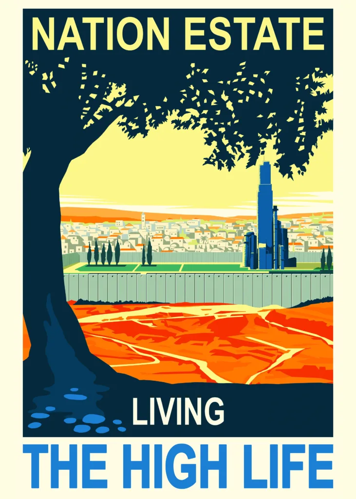 Published by Saqi Books and currently available for pre-order, Love is Resistance features 77 commissioned tear-out posters by artists, writers, students, and activists from around the world, including Ahmed Shihab-Eldin, Alessandra Sanguinetti, Ibrahem Hasan, Samia Halaby, and many more. “I came up with the idea in early June while waiting for a friend at the Barbican,” says Mouswai. “I was browsing through the bookshop when I came across a Black Lives Matter publication featuring thirty commissioned posters by Black artists. I just thought, ‘Wow…at a time when millions are shutting down cities and flooding the streets, this is exactly the kind of visual intervention we need for Palestine.’ I immediately put out a call for contributions among friends and colleagues, and ultimately commissioned exactly 77 posters to mark each year of occupation.”