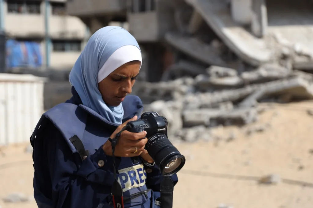 “I lost my soul in this war. I lost myself, and we lost all our privacy,” said Mariam Riyad Abu Dagga. “We keep saying we will relay this image to the world, but behind the image is a lot of suffering for the journalists of Gaza,” she added, speaking in a weak voice. “I used to finish my coverage and then immediately think about how to move my family,” Mariam explains. At the time of our conversation, the photojournalist had already been displaced more than 10 times.
