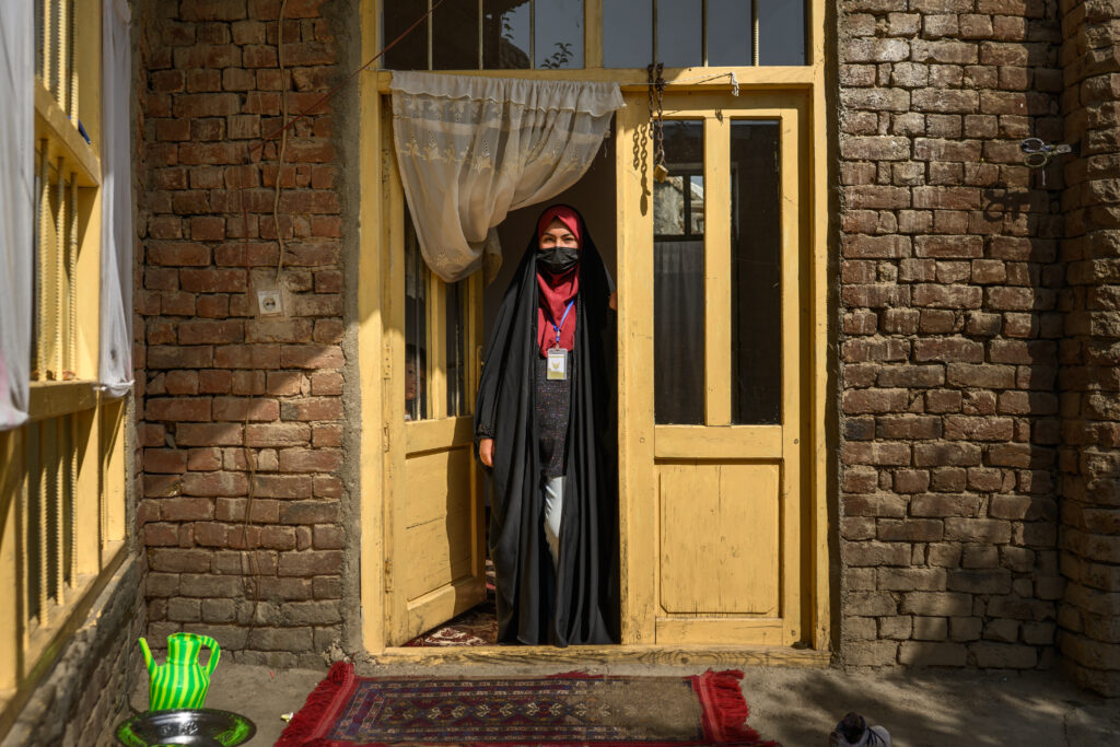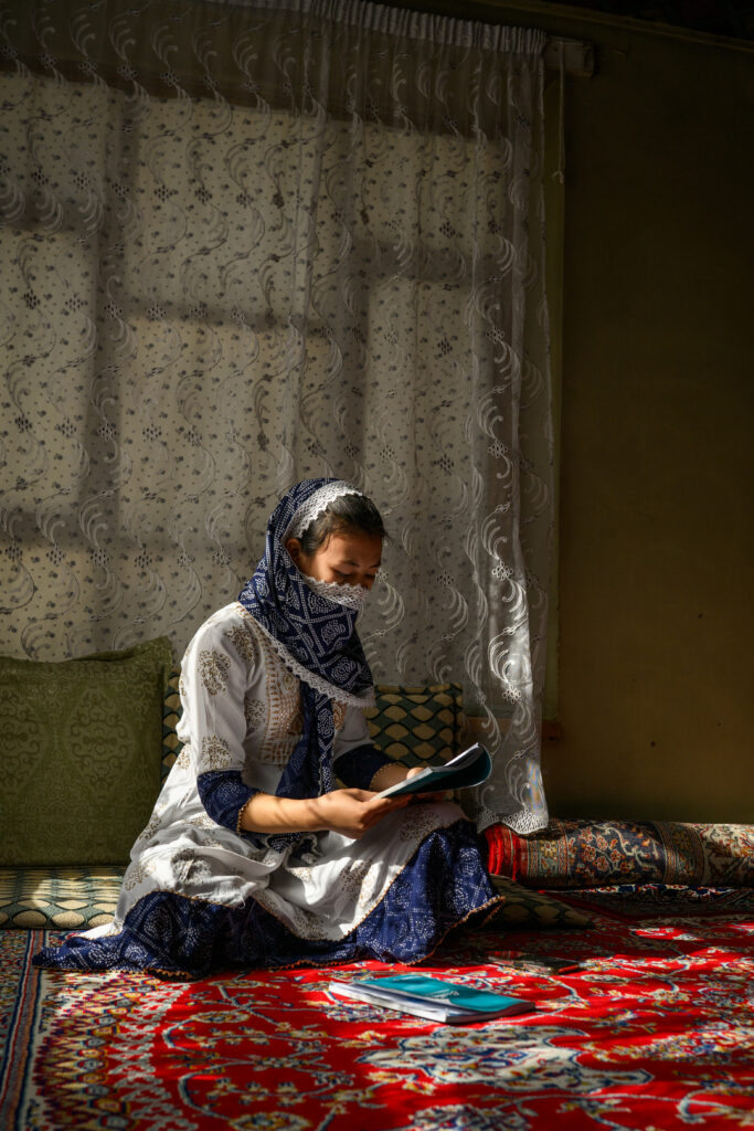 Noora prepares for the class she teaches to primary school children, on October 12, 2025 in Afghanistan.