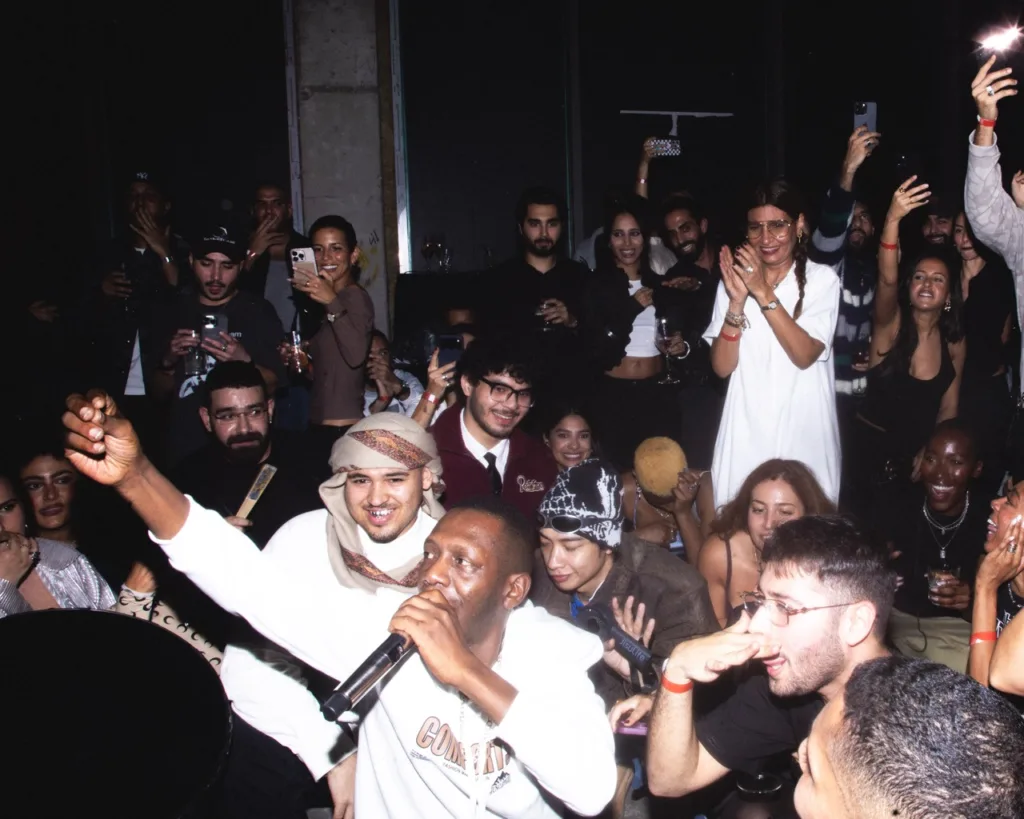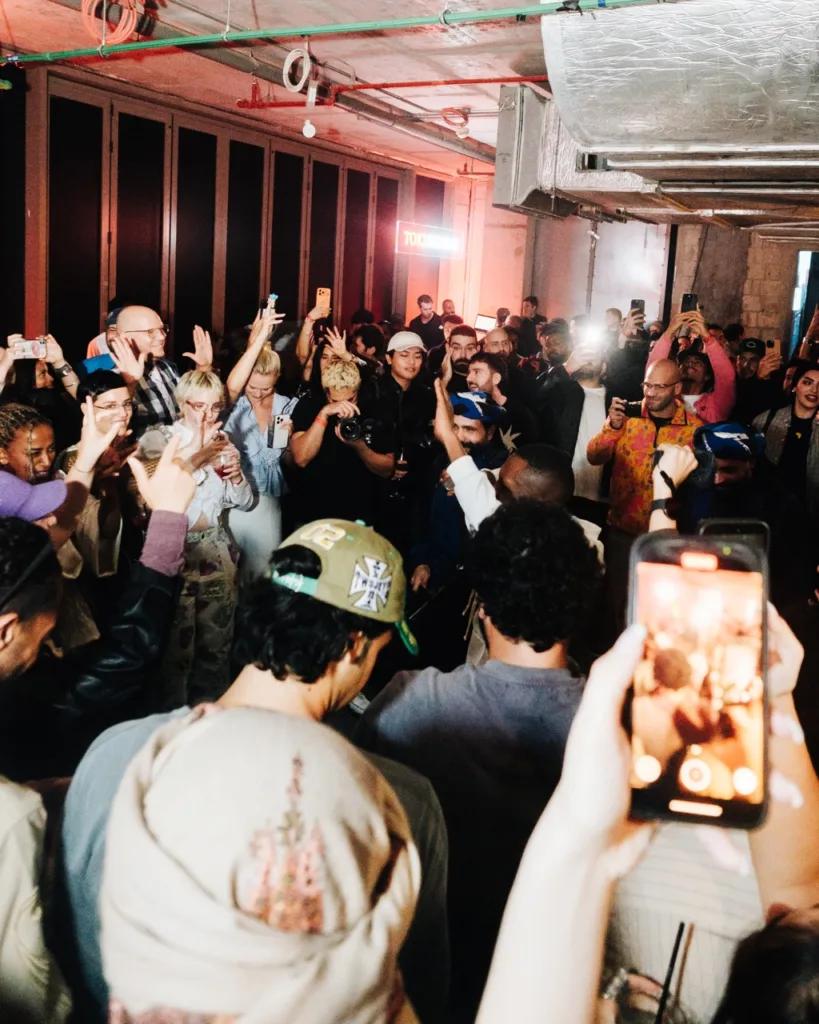 Johannesburg native and New York-based DJ and producer Zano kicked off the night with her signature mix of amapiano and afrohouse, all while the best of the region’s creative industry trickled into Room #3 at 25h Hotel. Doors opened at 9 pm, and by 9.30 it was nearly packed, with everyone from friends, family and close collaborators like Bilal Al Kadhi to many of this year’s Dazed 100 talen,t including Karim El Atrache, Zein Jaouni, Marcellina, Noor Alazzawi and Dana Dawud. Even global stars like Pa Salieu made a surprise appearance.