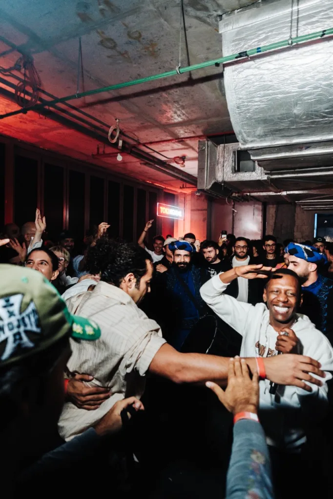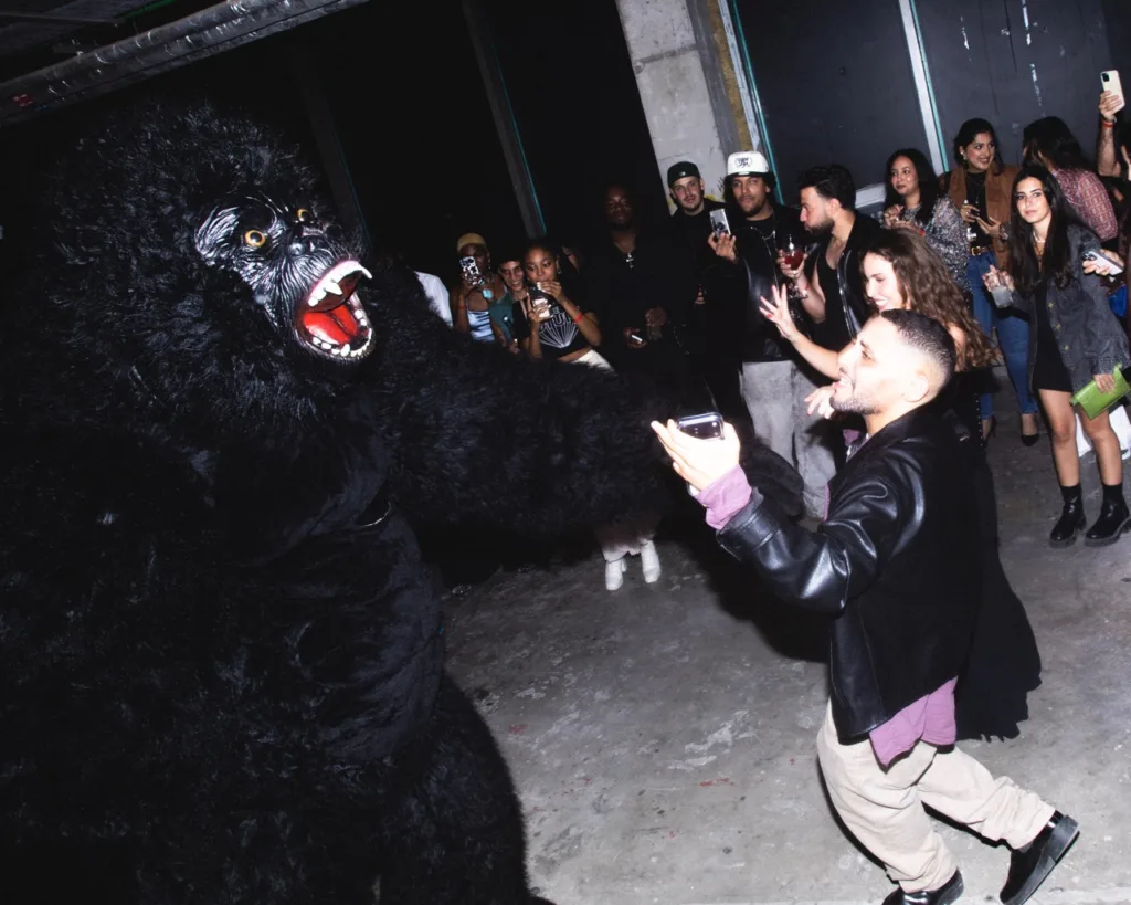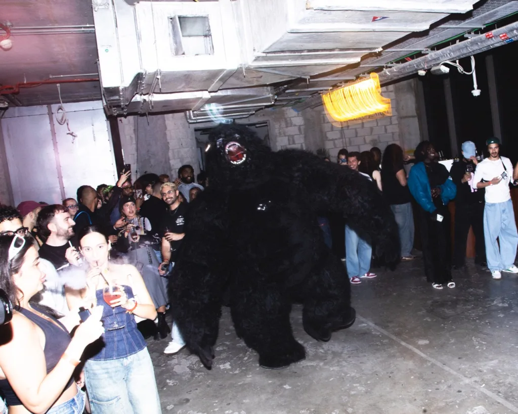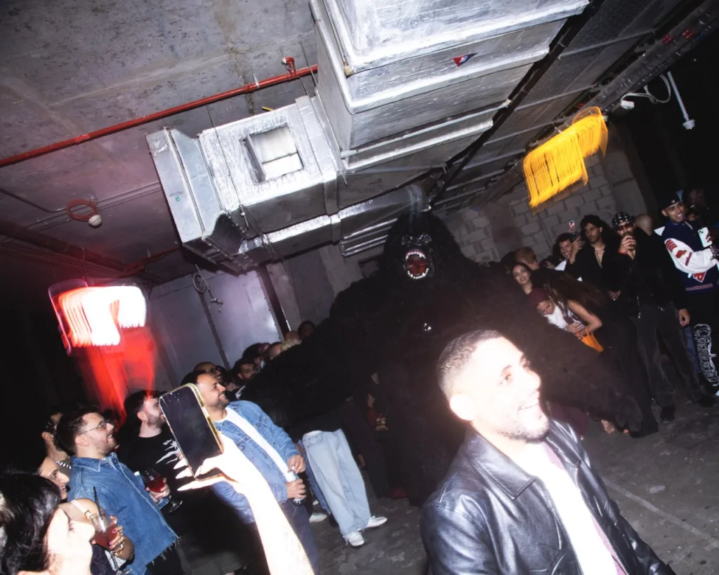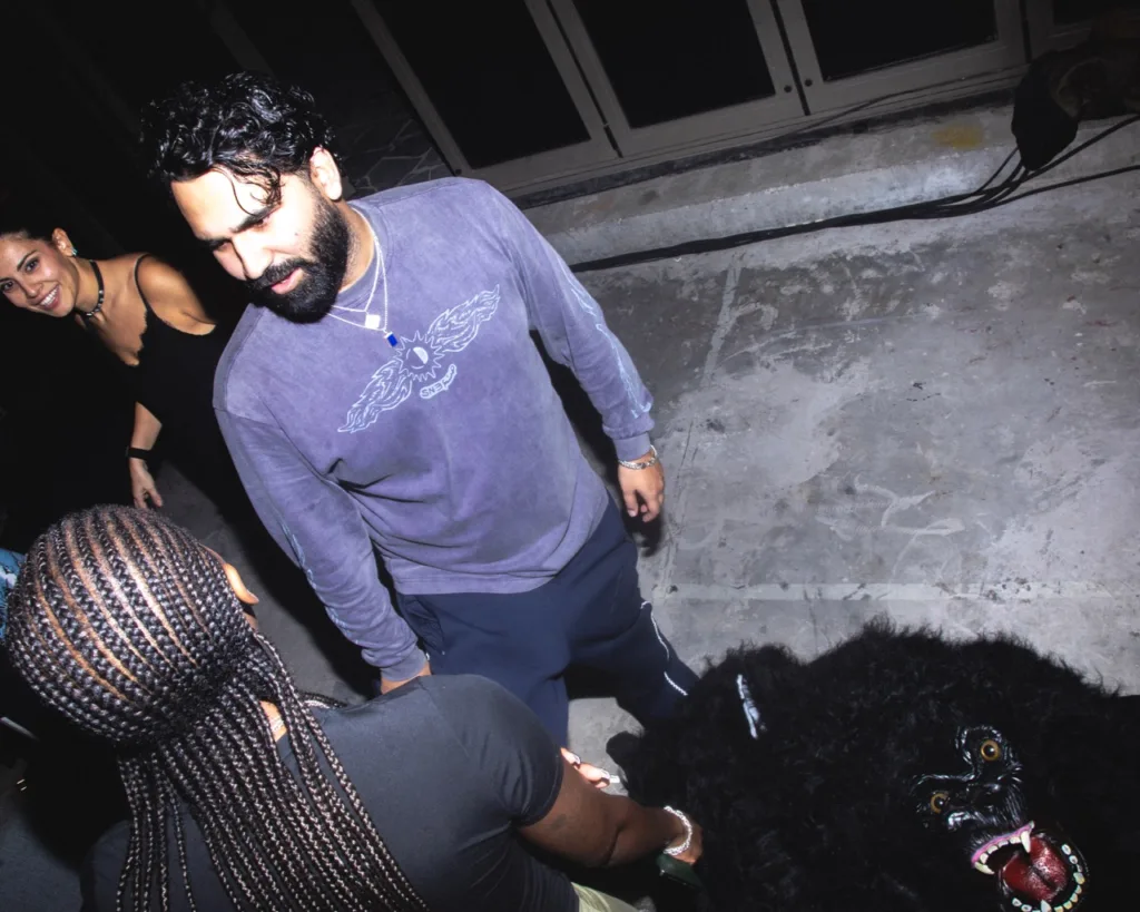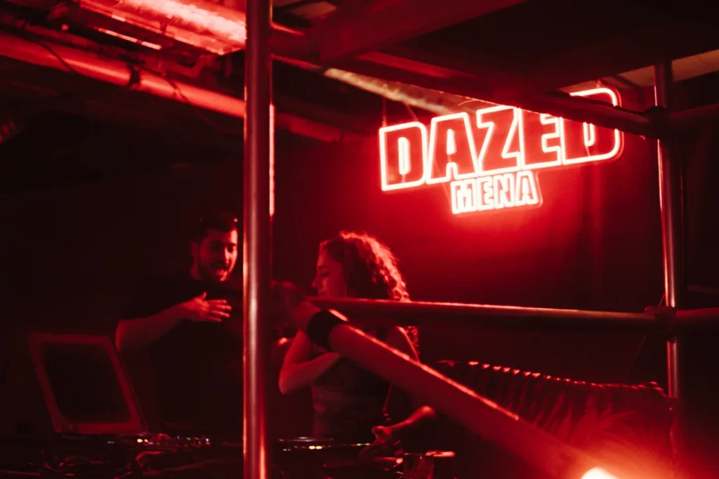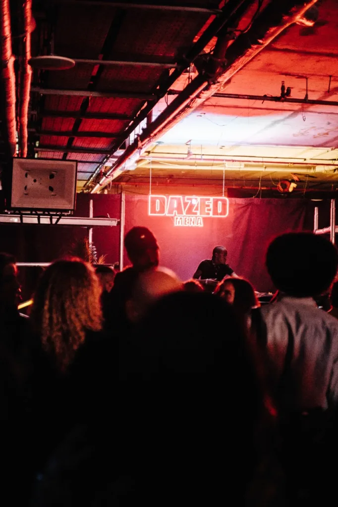 You might have seen the stories by now: a red neon-lit warehouse, Jordanian legendary singer Ahmad Al Aly mumbling his way through Reel 2 Real’s I Like to Move It, and a giant inflatable gorilla busting a move smack dab in the middle of IASC’s set. Last night could have been mistaken for bad AI or a fever dream. In fairness, it felt like one—it was also the perfect celebration for one year of Dazed MENA: late into the night, surrounded by community.