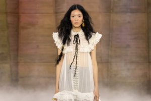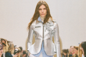 Modernist femininity, for Julien Dossena at Paco Rabanne, is never neat. It’s slightly louche. A little off. A refusal of polish, a rebellion against perfection.…